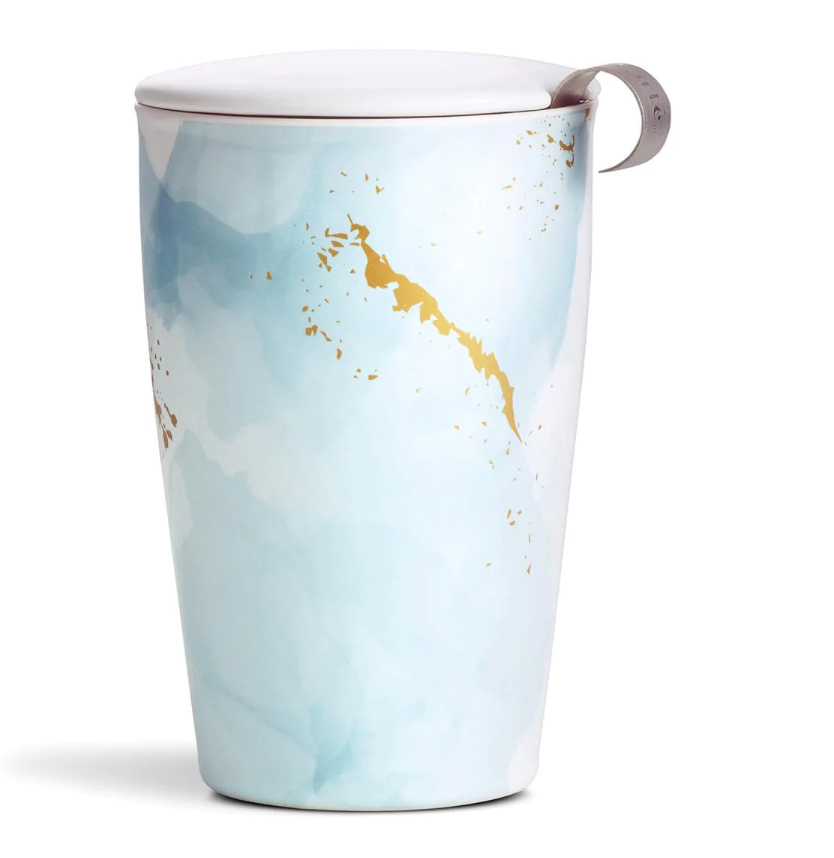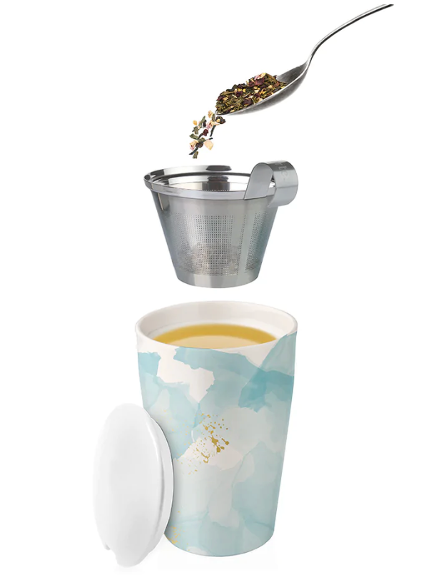 Loose tea by the cup.....simple. Our Tea Forte double-walled ceramic tumblers and integrated stainless steel infusers make steeping loose tea by the cup simple. The innovative double-wall construction keeps the tea hot and the tumbler cozy to hold. Add the lid to your cup while steeping. When done, remove and use as a tray for your infuser basket.