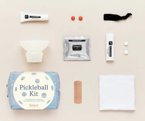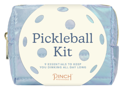 Do pickleball emergencies have you...in a pickle? Dink all day long with our new Puffer Pickleball Kits. Contains 9 must-haves: sunscreen, hair tie, deodorant towelette, electrolyte tablets, ball retriever, cooling wristband, pain reliever, adhesive bandage, and blister balm.