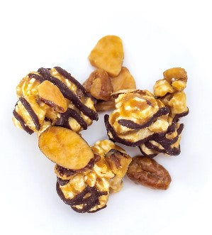 Get into the holiday spirit with Salted Caramel popcorn, caramelized pecans, almonds, and a drizzle of dark chocolate.