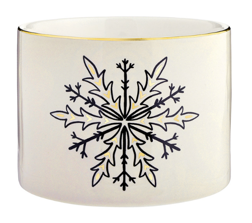 - Gold foil rim and snowflake design on each dip bowl