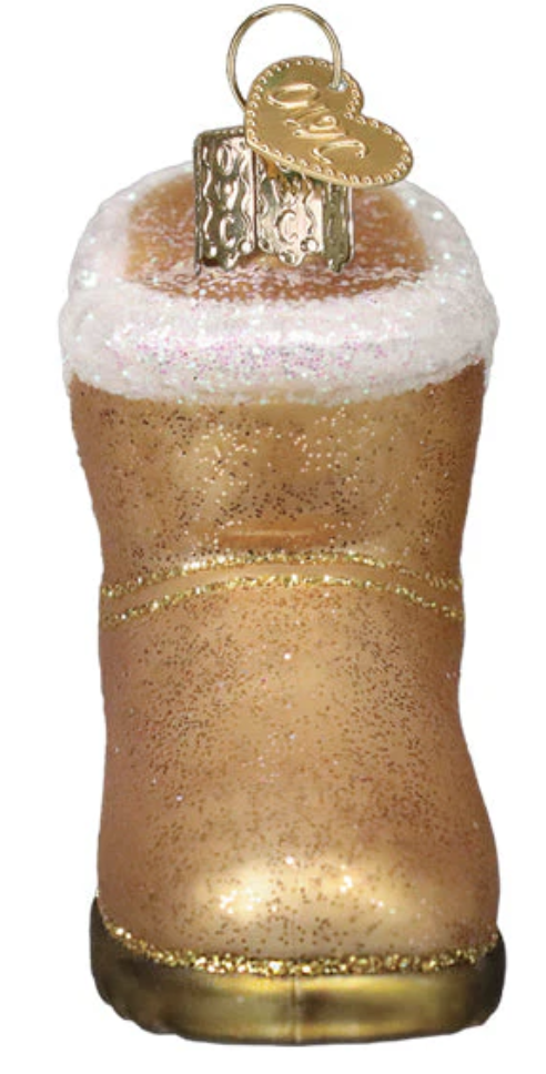 The comfort of slipping into a cozy sheepskin boot on a cold winter day is like stepping into a warm cloud. Comfort and fashion combine just like the sparkle, shine and uniqueness of this ornament.