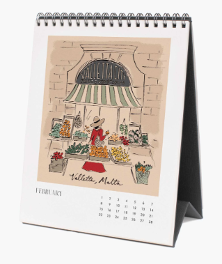 See the world with our Travel Sketchbook calendar, featuring original sketches inspired by the adventures of Rifle Paper Co. co-founder and CEO Anna Bond. With a spiral binding and a handy attached stand, the calendar can be hung on the wall or propped on your desk.